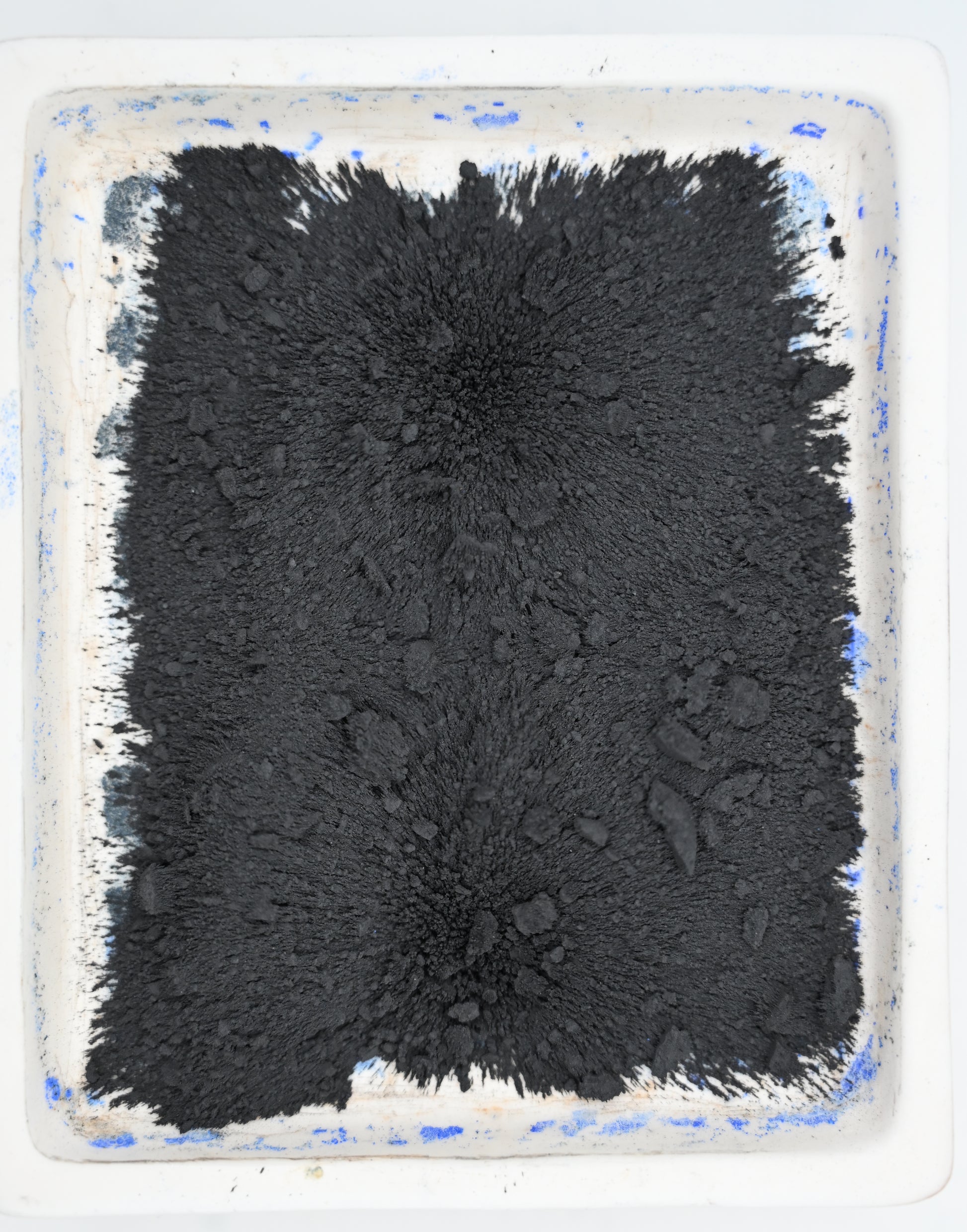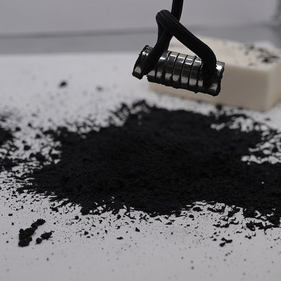 This is a magnetic ceramic pigment made from copper ferrite (CuFe₂O₄). When used dry or mixed into a binder, it responds visibly to external magnets, allowing you to create textured, magnet-reactive surfaces in paint, ink, resin, and experimental media.